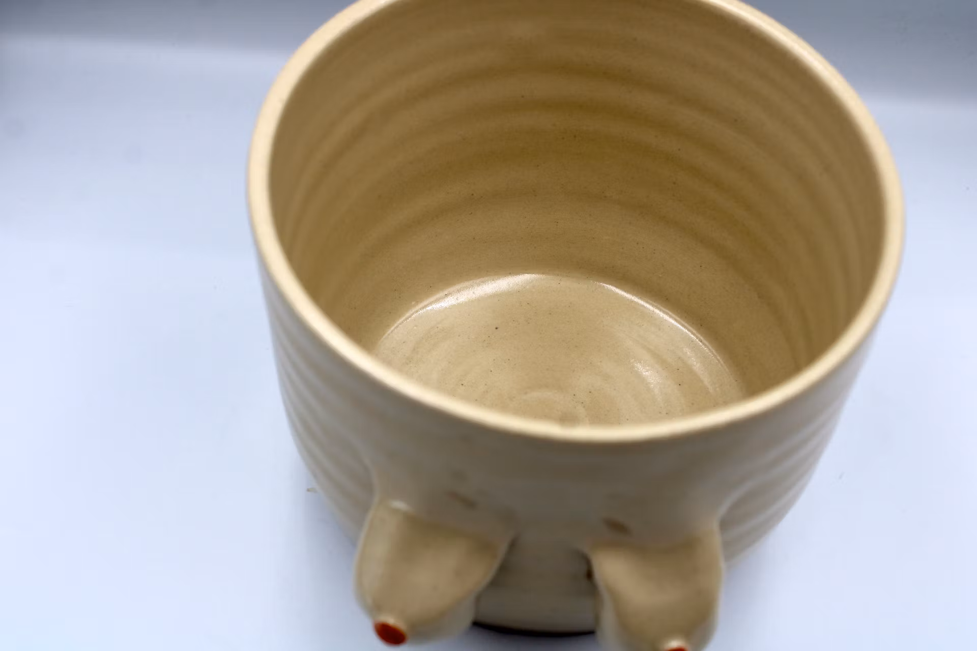 Krukan är handgjord i keramik, glaserad med blank transparent glasyr som lyfter fram lerans ljusa färg.